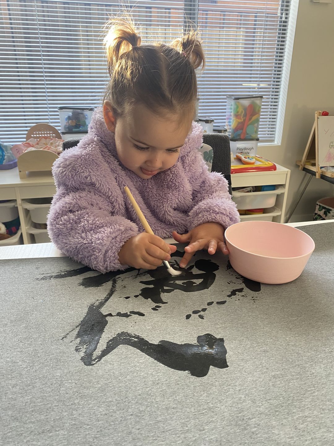 Suyla boyama yapmak ona sakinlik veriyor. Önceden çok huzursuzdu, şimdi daha huzurlu ve mutlu.